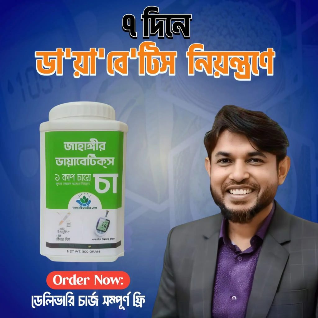 জাহাঙ্গীর ডায়াবেটিস চা– প্রাকৃতিক উপায়ে ডায়াবেটিস নিয়ন্ত্রণ করুন! অর্জুন, জাম বীজ, সজিনা পাতা, মেহেদি পাতা, ডুমুরসহ বহু ভেষজ উপাদানে সমৃদ্ধ, যা দীর্ঘ গবেষণার মাধ্যমে তৈরি। কোনো পার্শ্বপ্রতিক্রিয়া নেই!